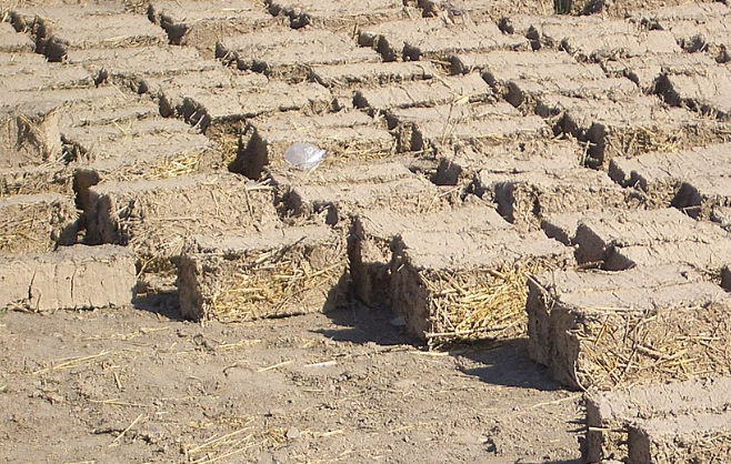 - Adobe Bricks: Sun-dried mud bricks are stacked with a mud-lime mortar,
